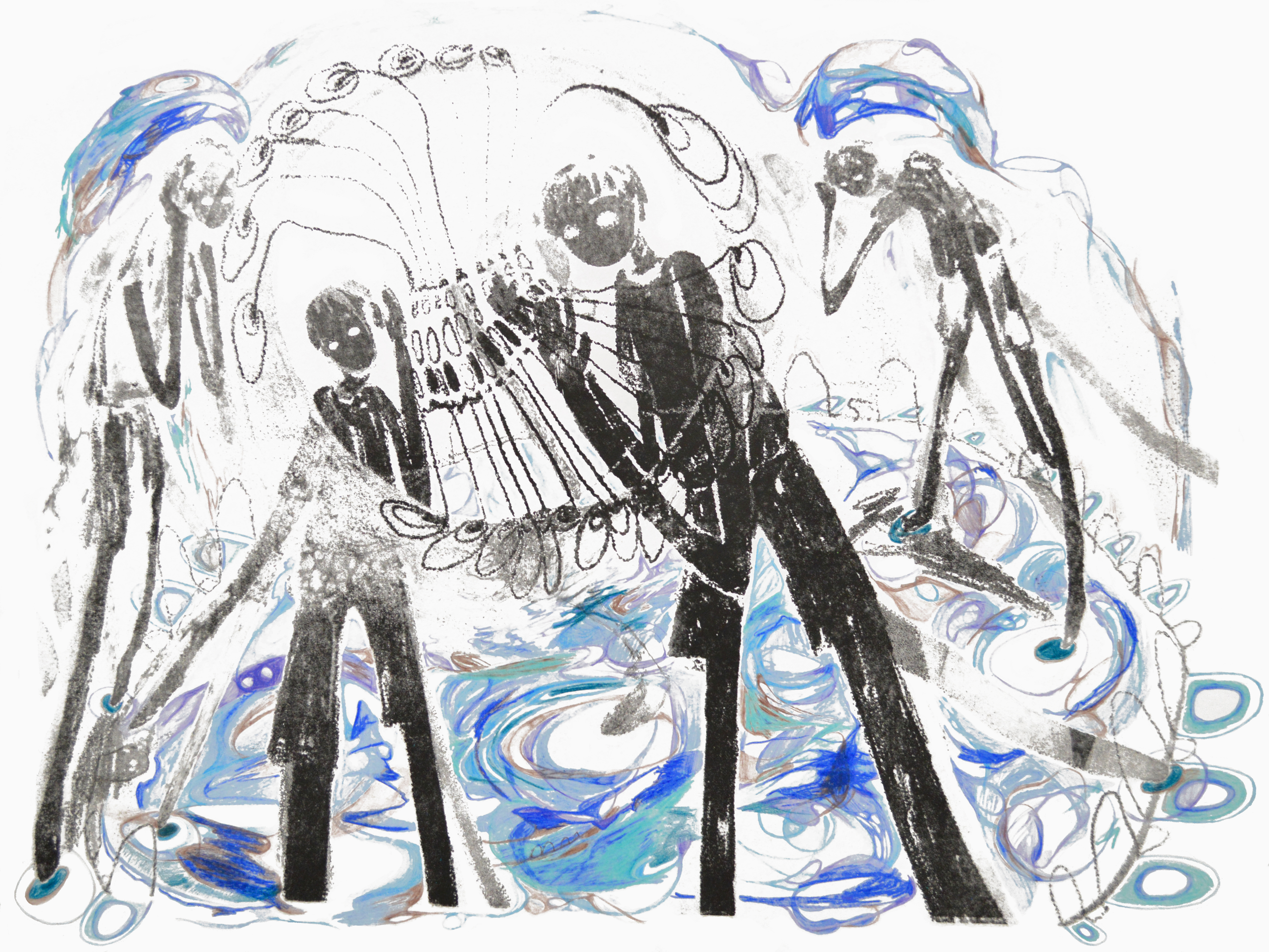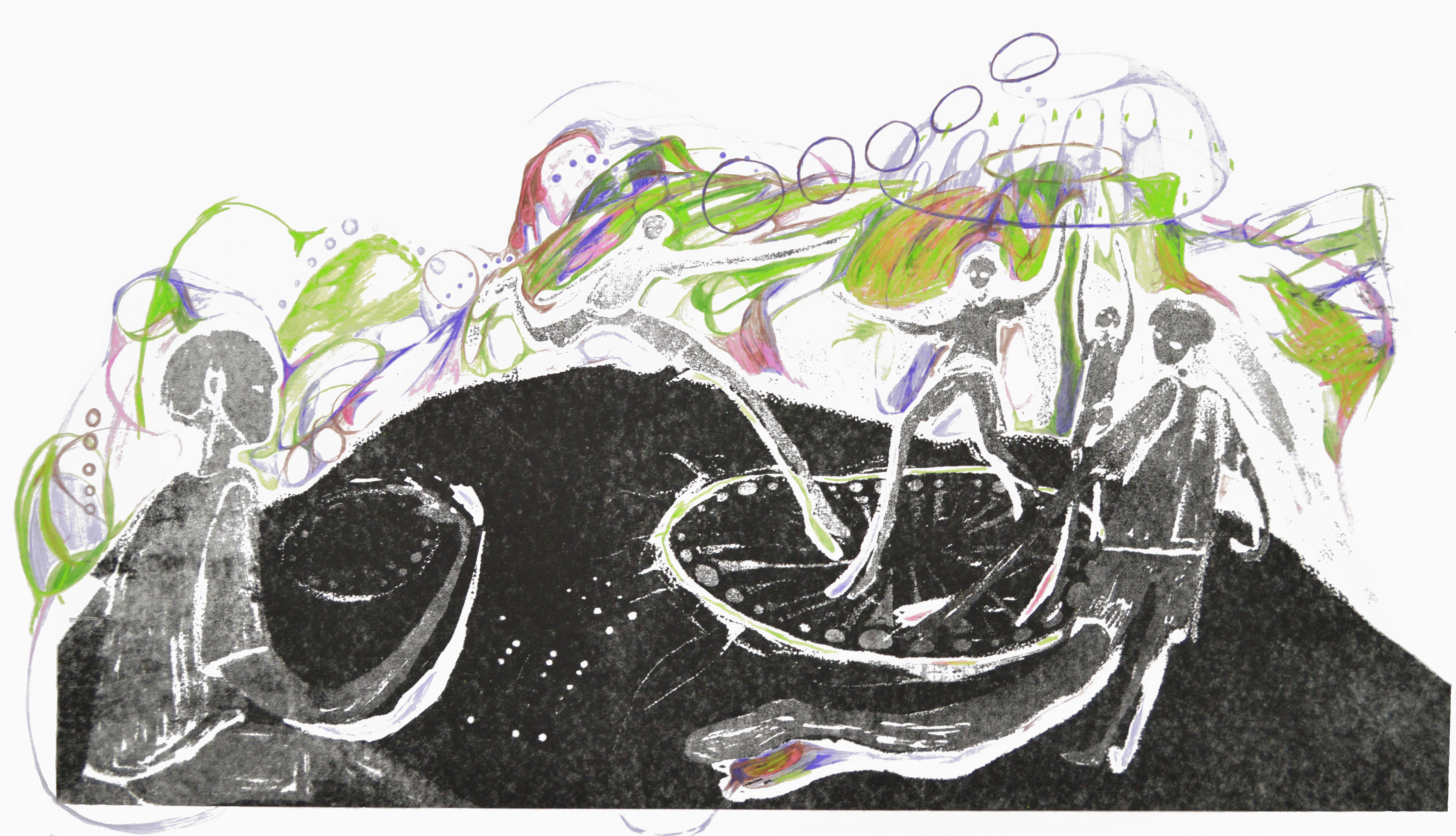 The words get jumbled and contorted in the game the children play. Sound waves ripple like water. They go around the circle, whisper, listen, repeat.